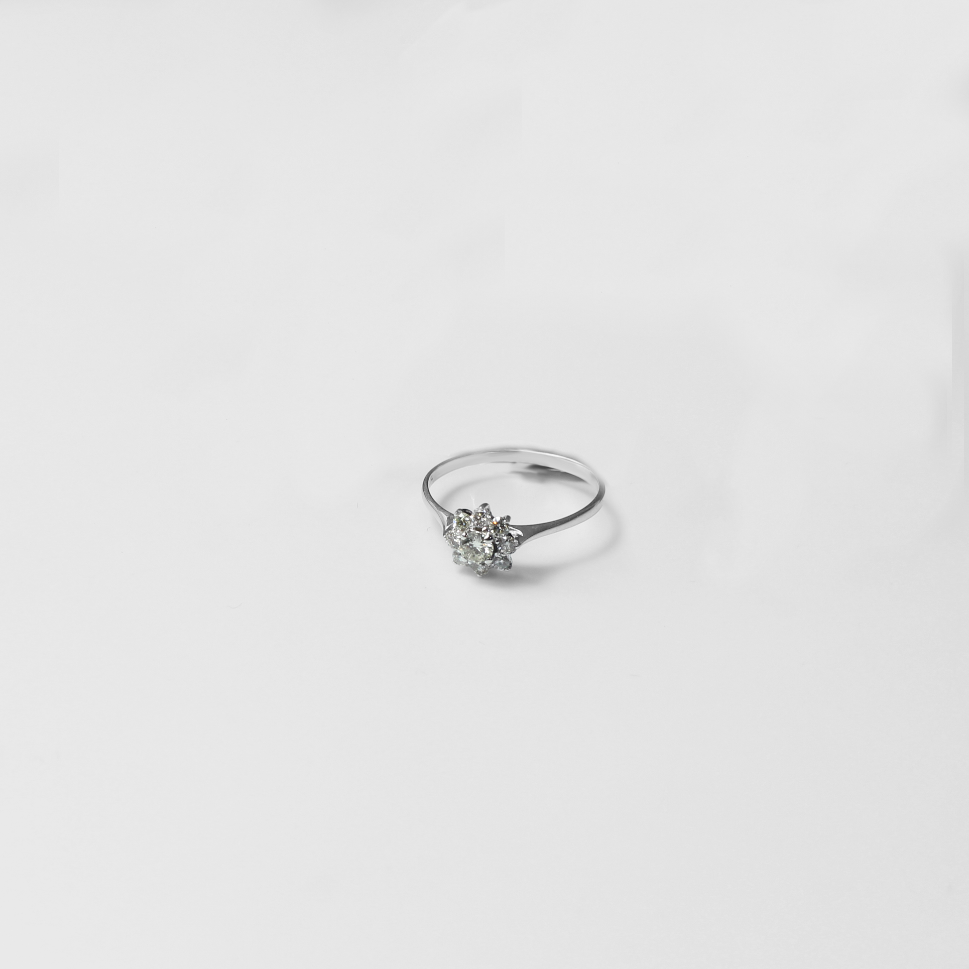 Etoile Cluster Ring — a constellation of finely set stones in 18k white gold, gathered for star-bright shimmer. Delicate yet dazzling, this clustered silhouette brings celestial sparkle to both stacks and solo wear.