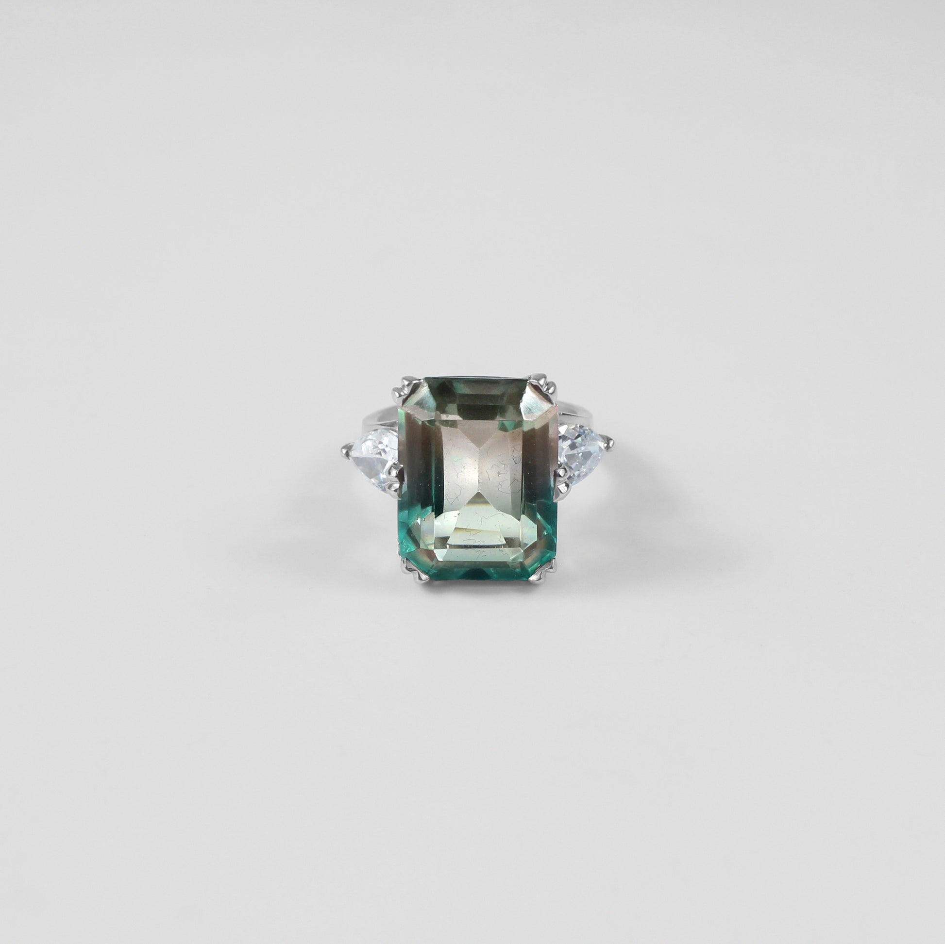 Greenfire Cut Ring is crafted from polished 925 sterling silver, showcasing a striking green gemstone with precision cuts.